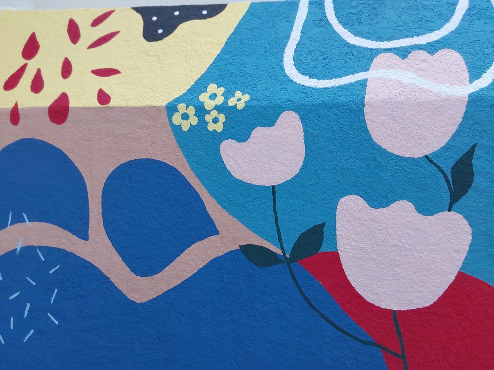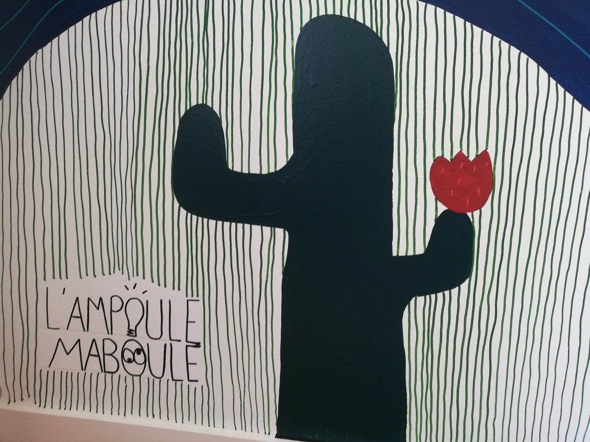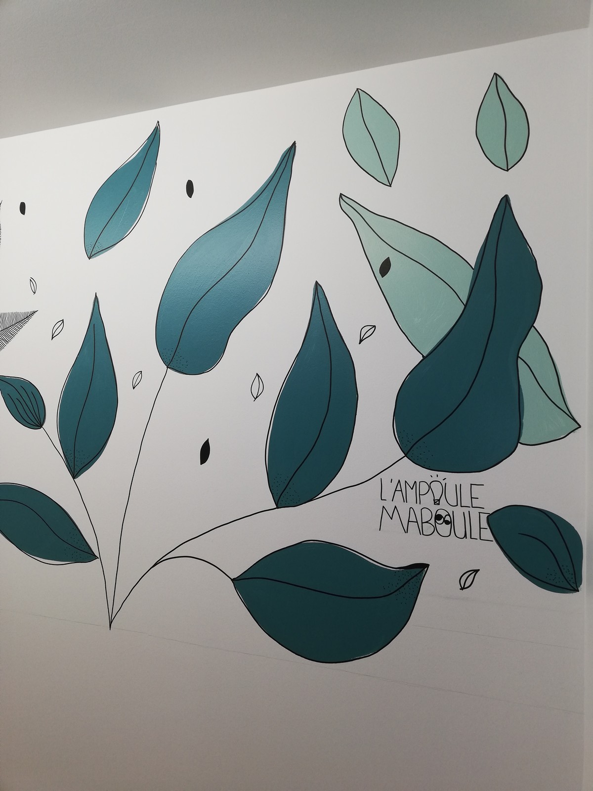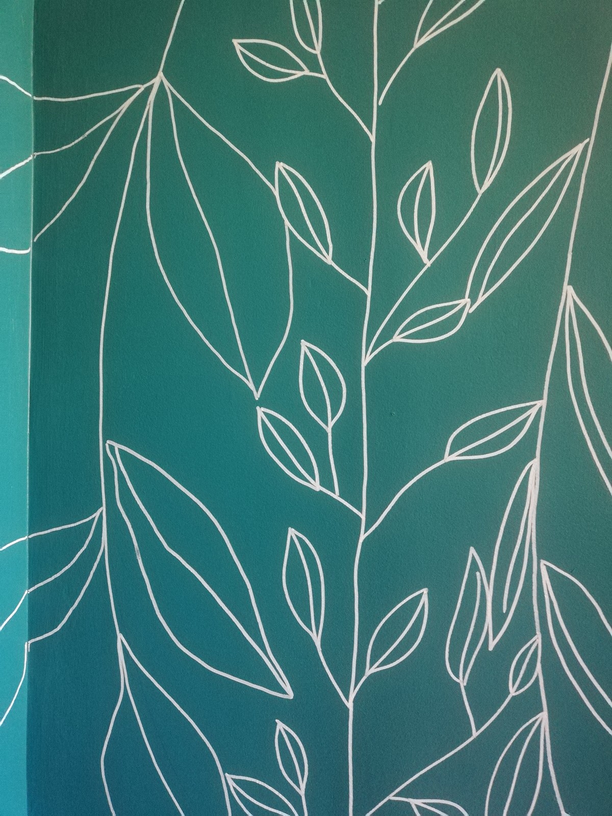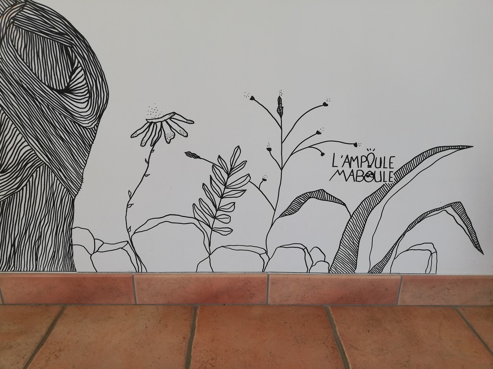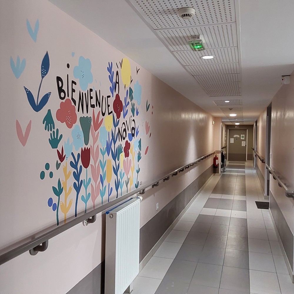 J’ai été très émue de réaliser ce projet au sein de cette maison partagée pour personnes en situation de handicap. Quel accueil j’ai reçu! Une fresque dans le hall d’entrée, imaginée par les résidents, pour souhaiter la bienvenue. Et une fresque dans la chambre d’un des résidents, qui souhaitait voir les montagnes et cascades de son pays natal, l’Afghanistan.