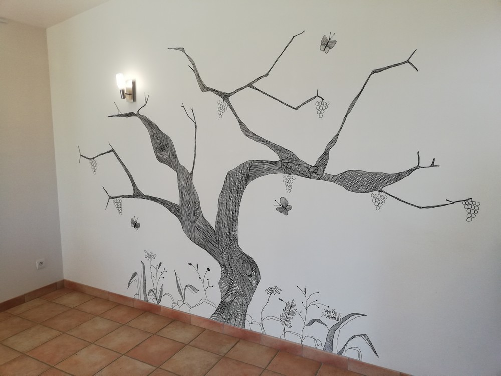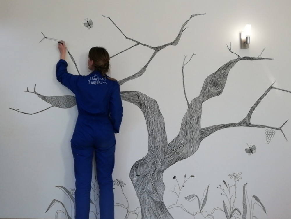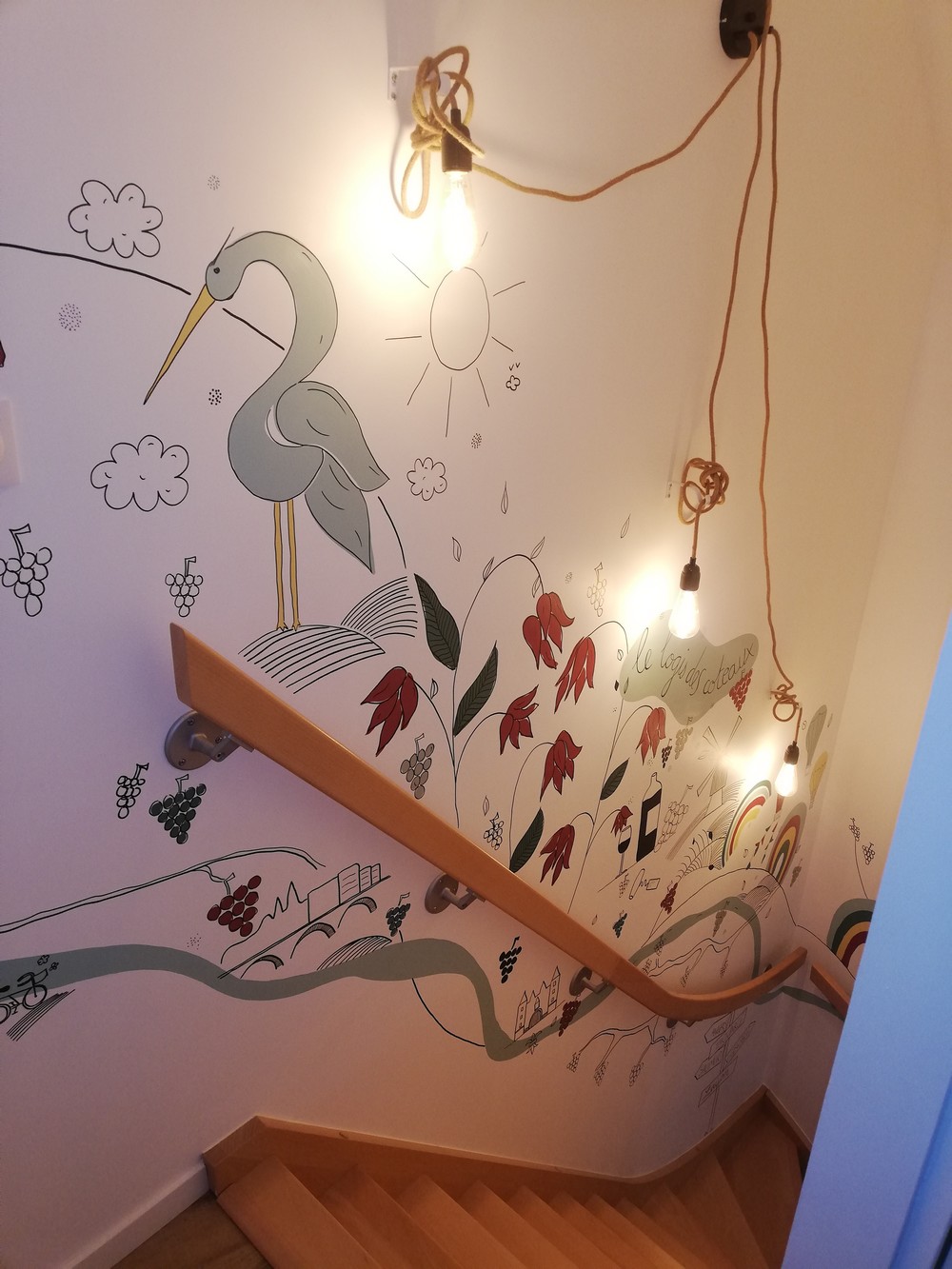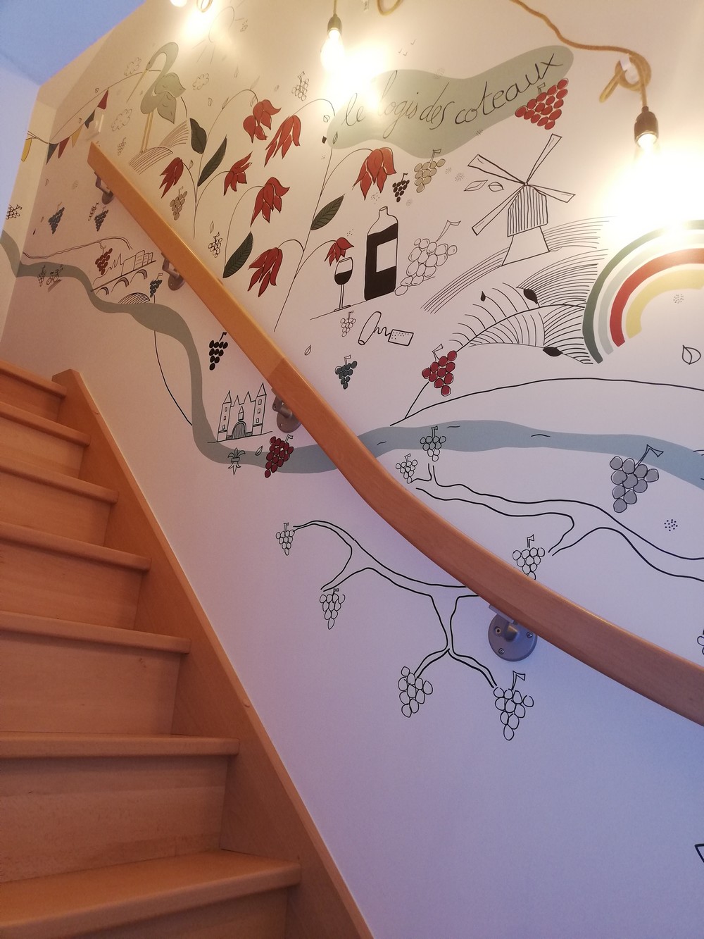 La commande pour cette fresque était de représenter des choses locales dans ce joli petit gîte qui vient d’ouvrir dans la commune de Thouarcé (49).