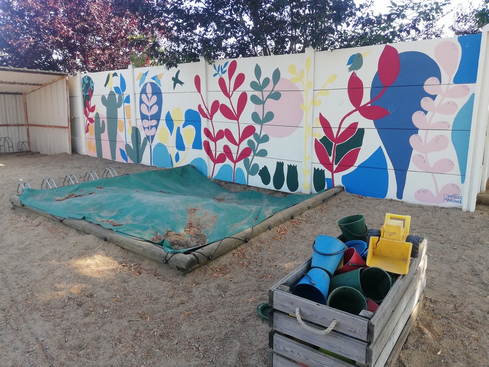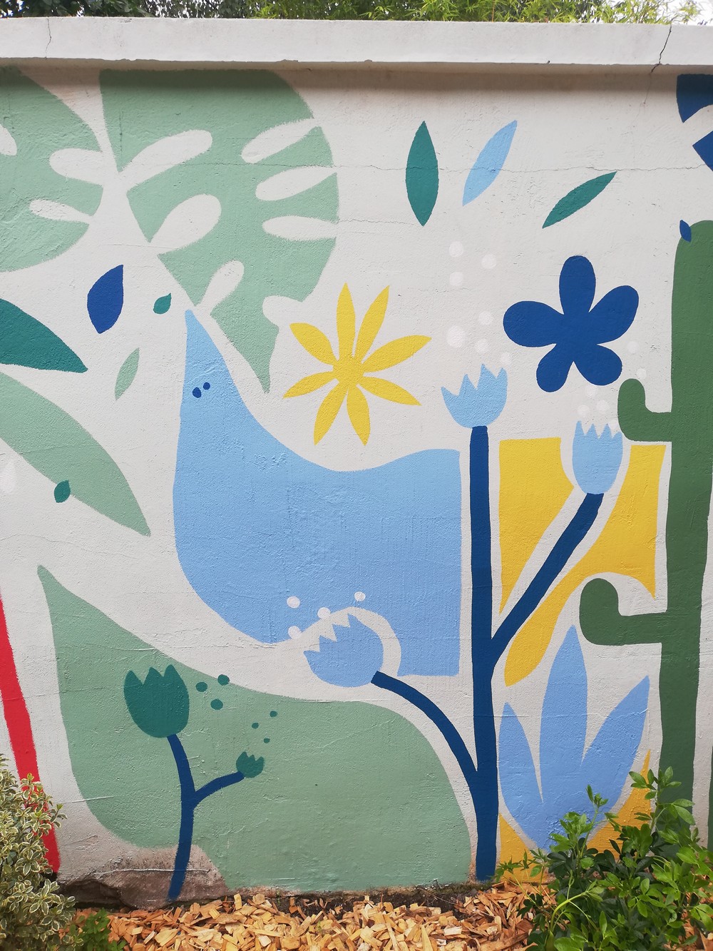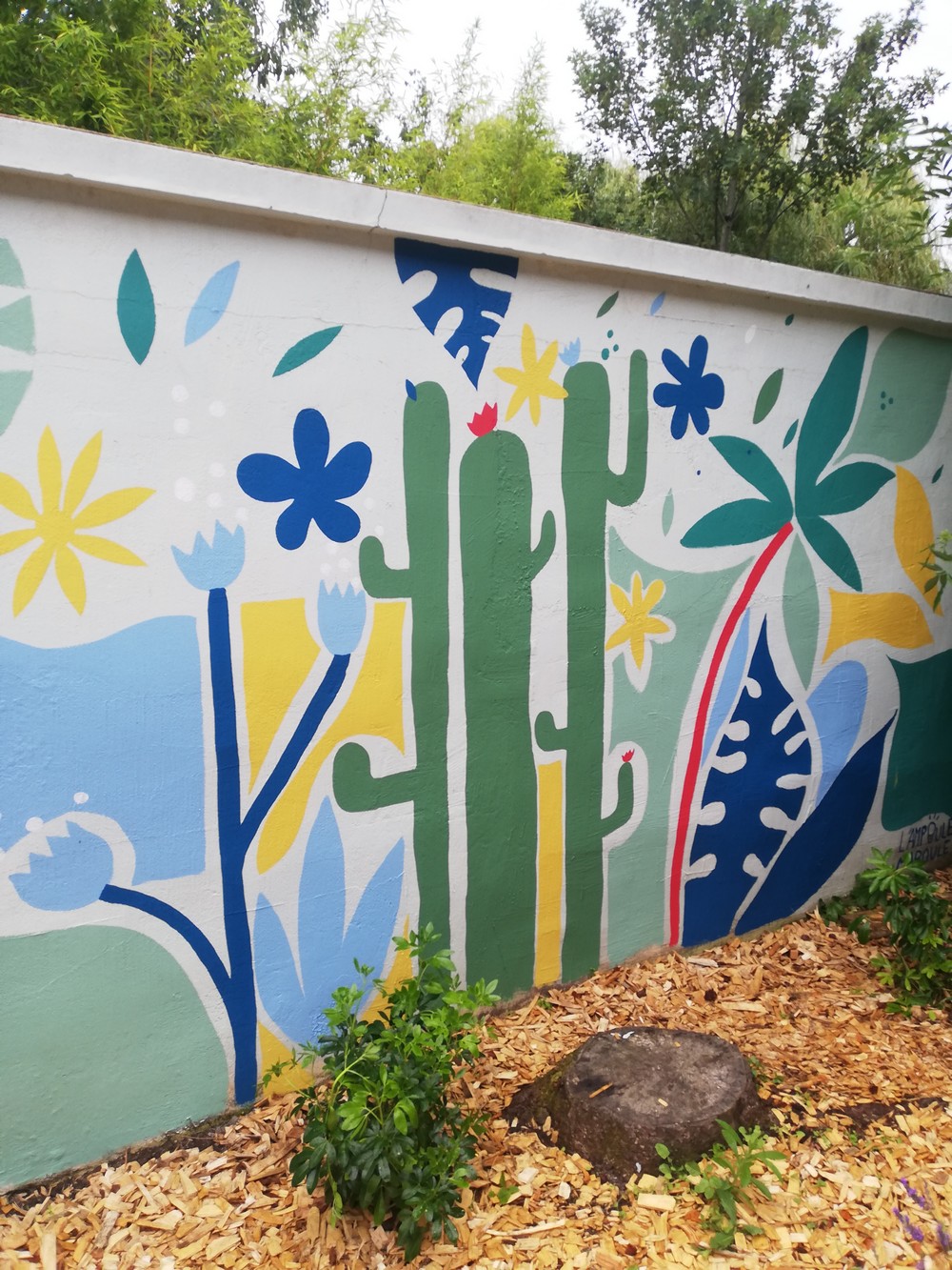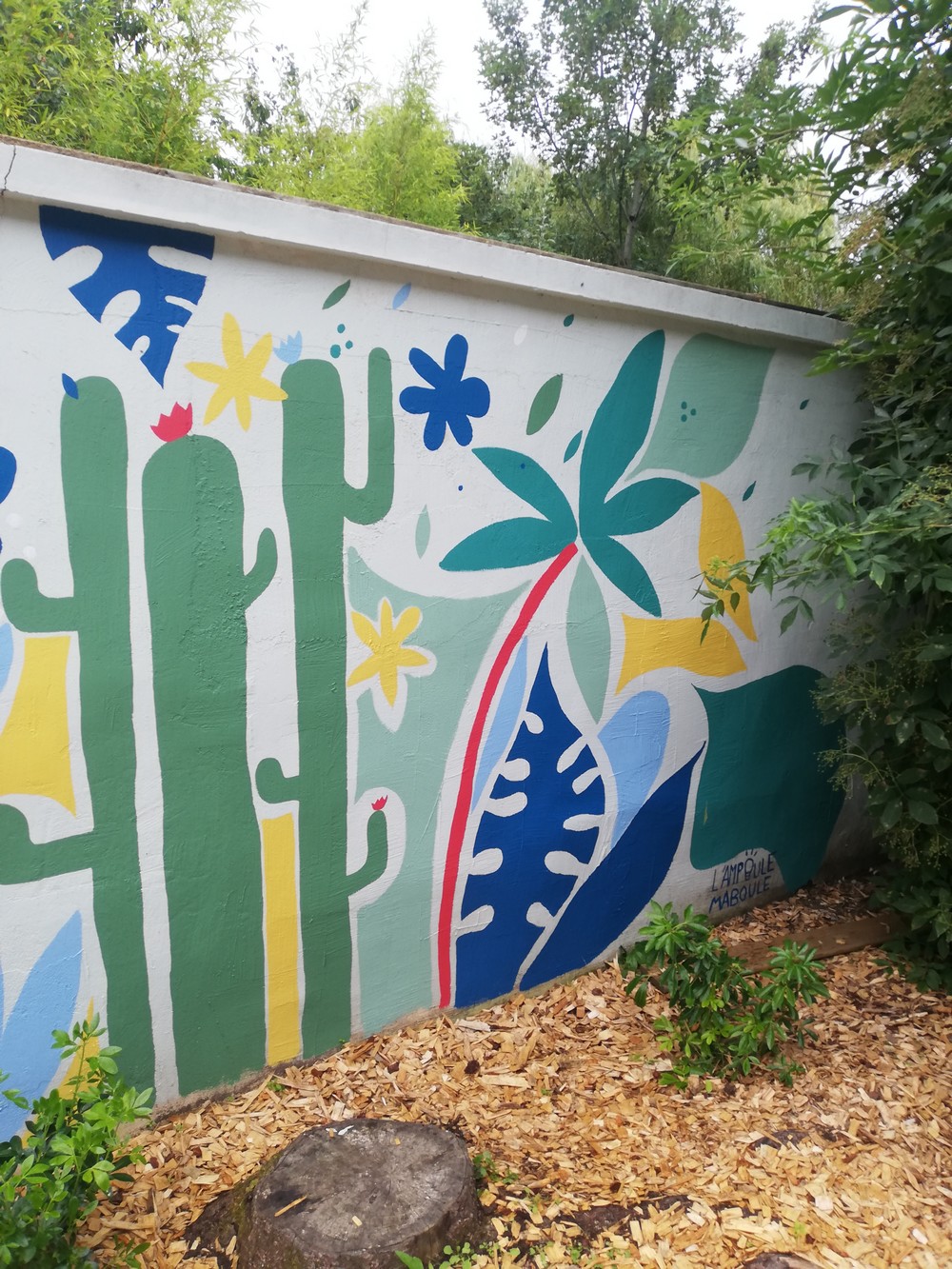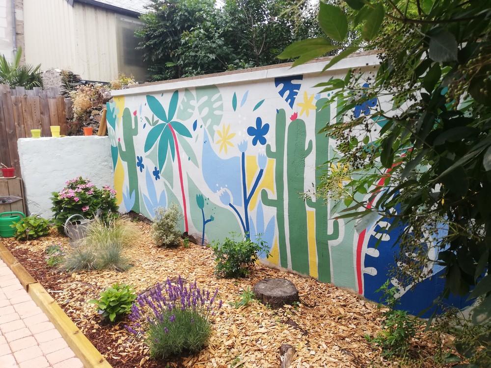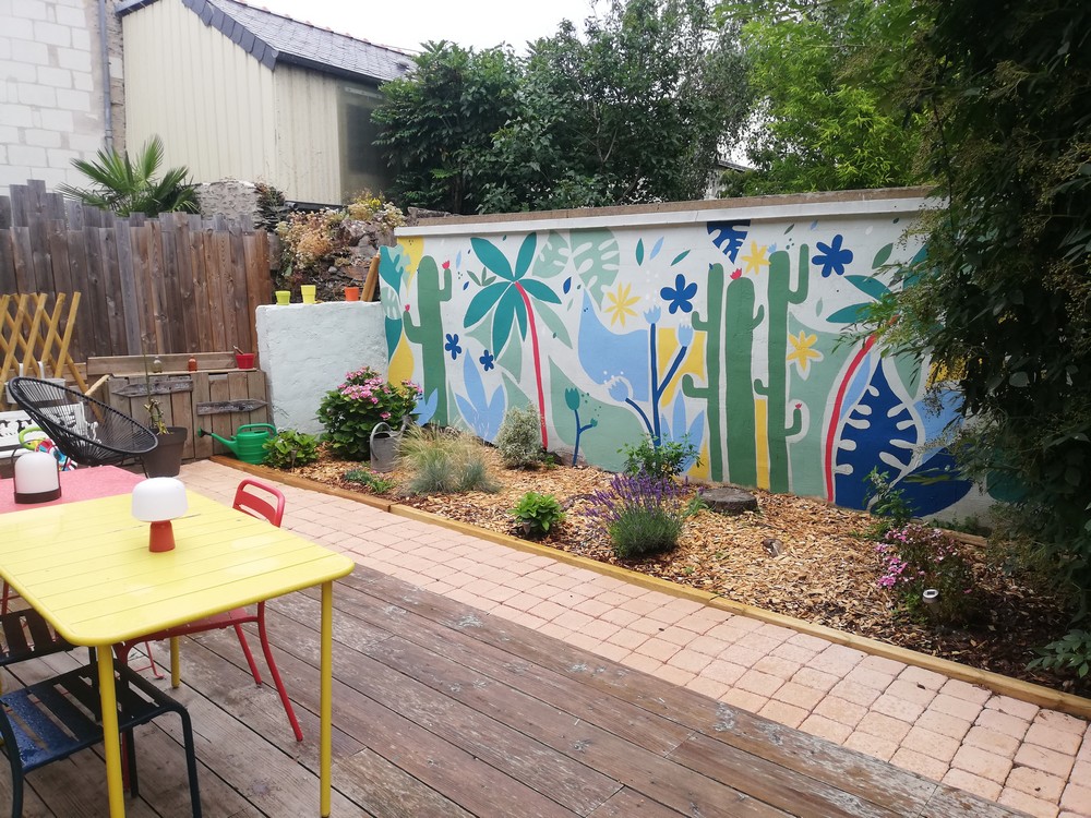 Anaïs et sa famille voulait de la couleur, beaucoup de couleur pour ce mur de jardin. Des couleurs vives qui égayent ce joli petit coin de verdure au cœur de la ville d’Angers.