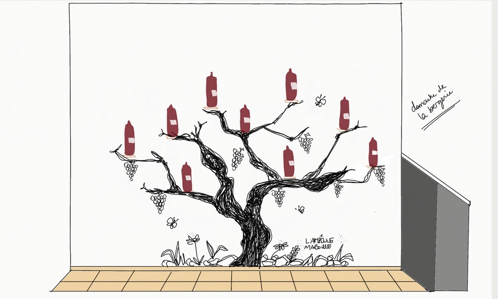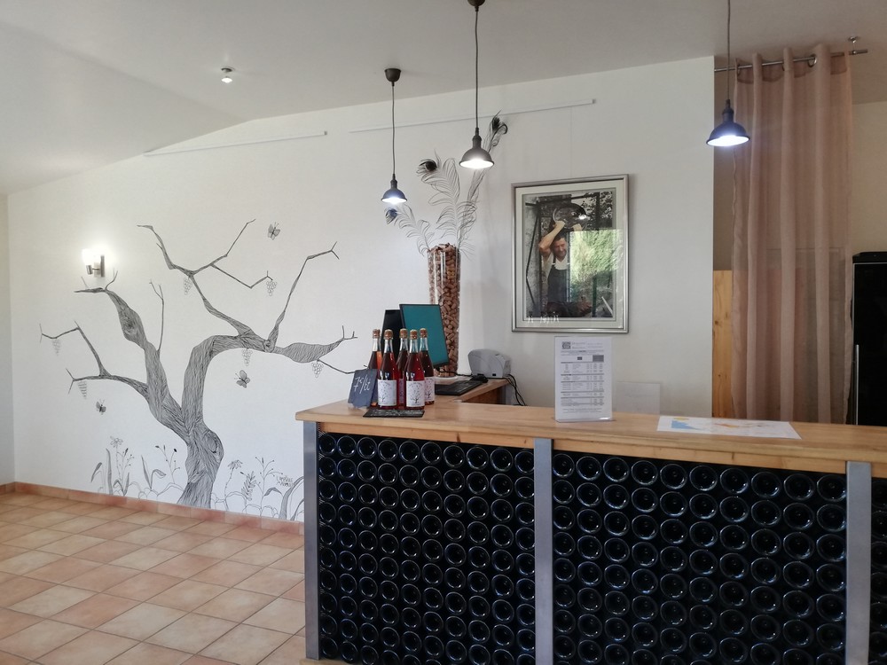 Un honneur de décorer le caveau de dégustation du fameux domaine de la Bergerie. Voilà une pièce personnalisée pour déguster le vin des vigneronnes.