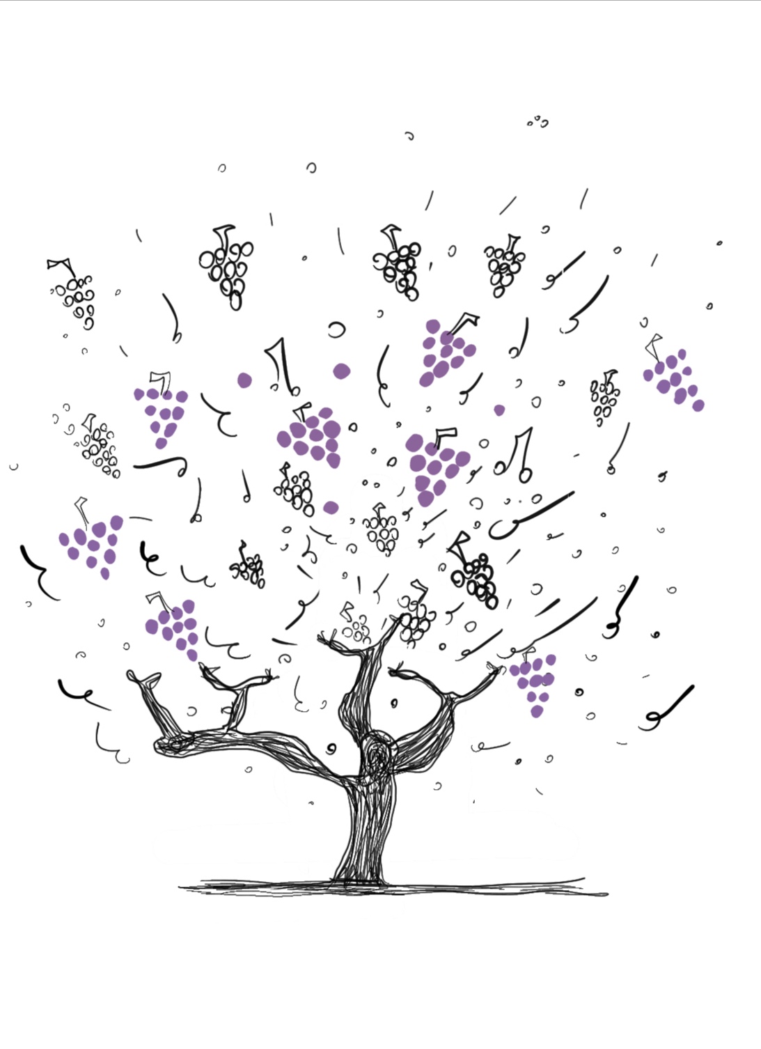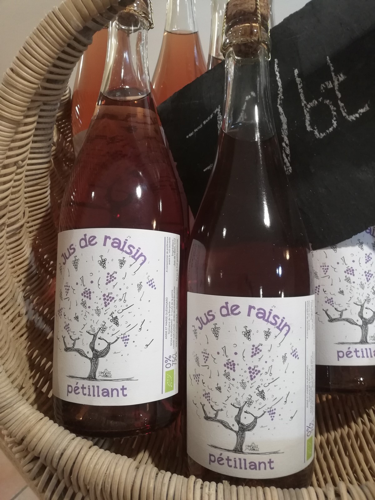 L’ampoule maboule est très heureuse d’avoir crée l’illustration pour l’étiquette de jus de raisin pétillant du domaine de la Bergerie à Champs sur layon.