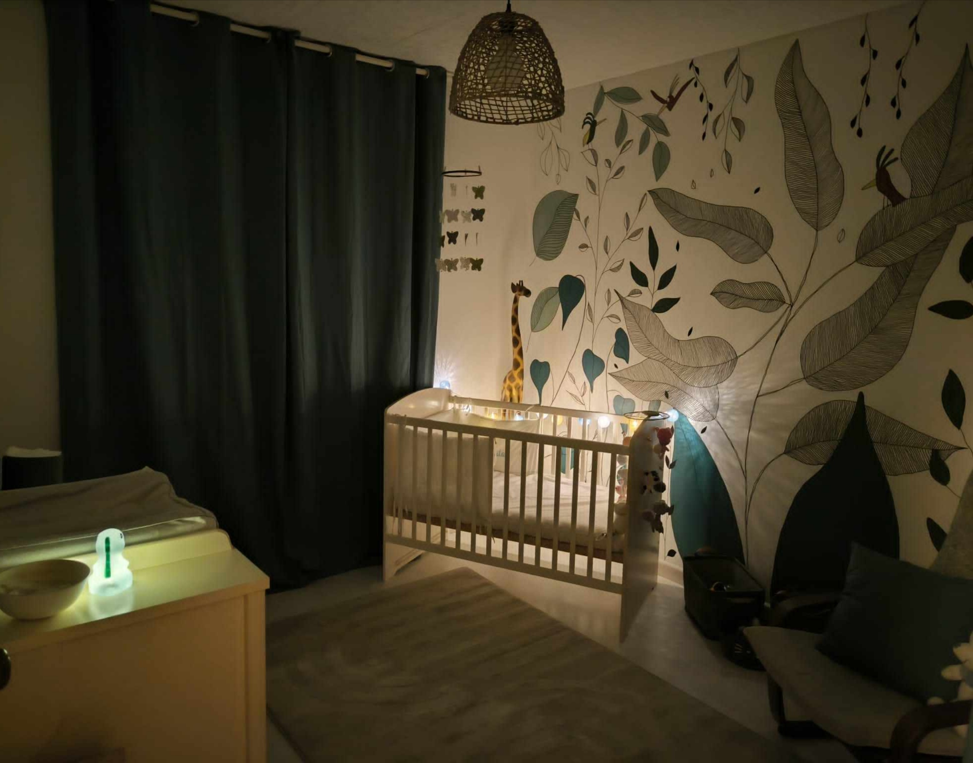 Les parents du petit bébé à venir voulaient un univers doux, coloré, végétal pour personnaliser sa chambre. Depuis, Marceau est né et s’endort paisiblement dans son petit nid rien qu’à lui!