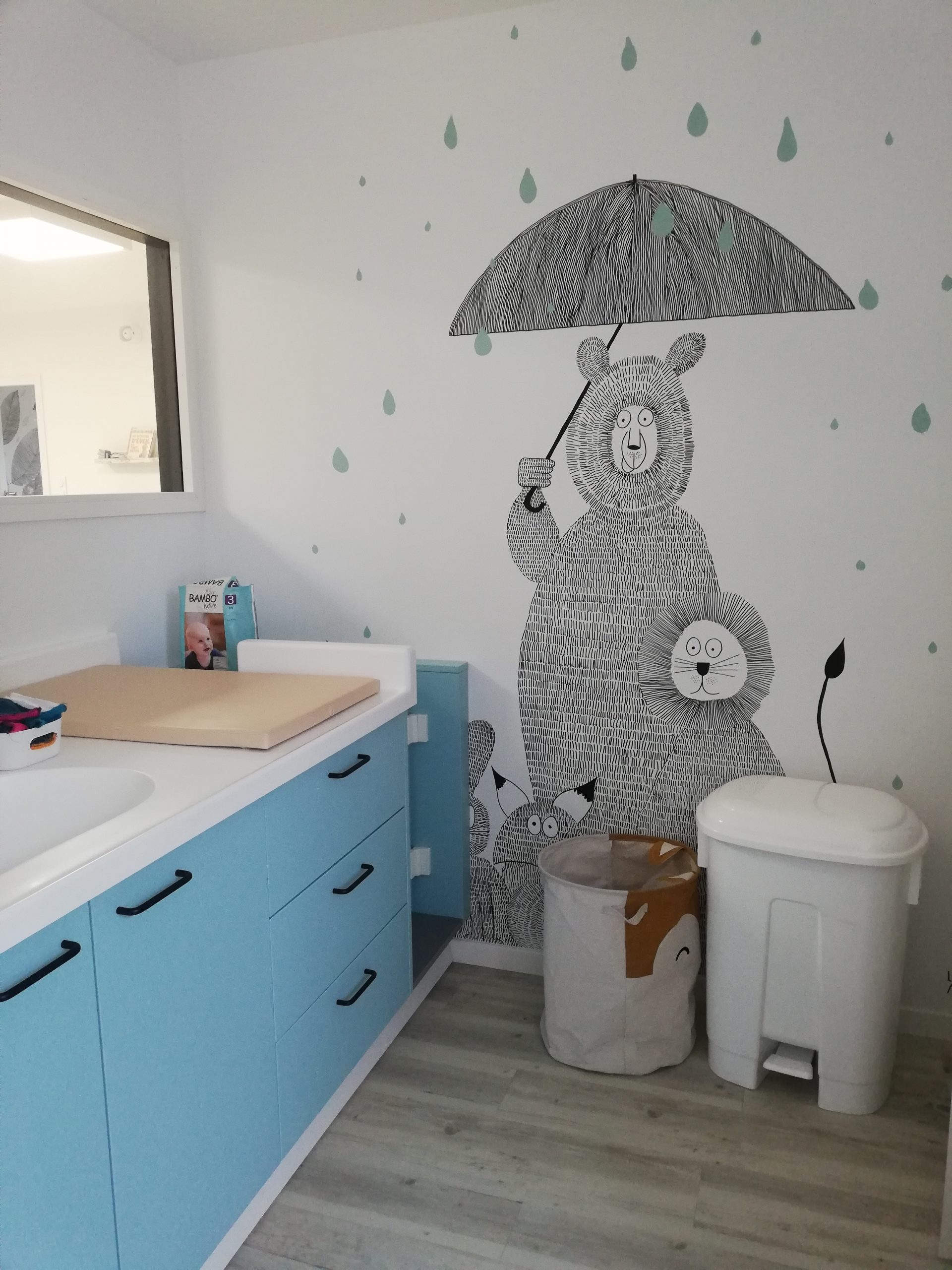 Les deux enfants de Claire sont fan d’un album de jeunesse. ils l’adorent à tel point qu’ils voulaient les images de leur livre préféré sur un mur de leur salle de jeux. Un coup de baguette magique de l’ampoule maboule et le tour est joué!